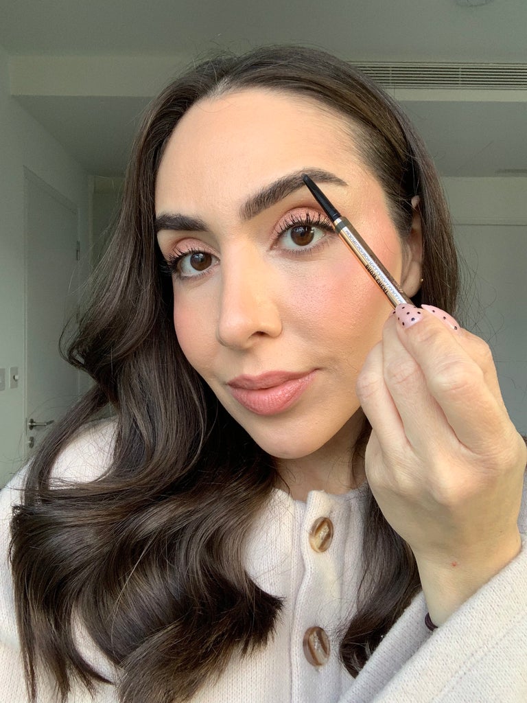 Brow Lift is a bit too chunky for my liking, but Brow Cheat is just right. The angled nib is smaller, letting you mimic fine brow hairs, and the pencil is creamy enough to fill in sparse patches quickly. It never fades or smudges on me, and I love the spoolie on the end for feathering out the pigment and creating natural-looking brows. I’ll admit, I’m not the biggest fan of the brand’s ultra-thin Brow Fix brow gel for my wiry brows — but if your brow hairs are finer, you’ll probably love it, as it’s totally inconspicuous.