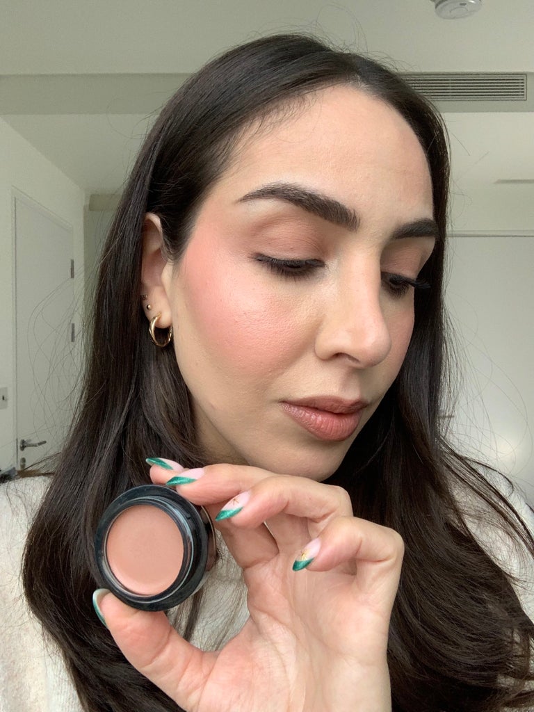 I’ll admit I wasn’t a big fan of Flush Balm the first time I tried it — but that was because I had the completely wrong shade. My advice: go slightly darker than you think. Since the product is pretty sheer, it needs to be built up if you want a bolder blush look. Here, I’m wearing Le Bon Bon, a stunning fuchsia pink, and I’m starting to think I’ll never go back to the other blushes in my makeup bag. It gives my cheeks the most natural, just-come-in-from-the-cold flush. My partner even noticed and complimented my makeup. Thanks to the creamy texture, it doesn’t last quite as long as I’d like, but a quick layer of translucent powder fixes that. If you don’t want to swipe it directly onto your foundation (I hate transfer!), tap a dense brush over the dome of the product and apply it that way.