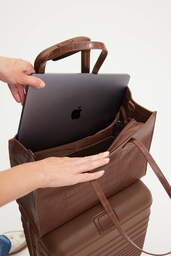 When it comes to business trips, bags with suitcase sleeves are a must. And these zippered options — from oversized totes to mini duffle bags — combine organized interiors with travel-smart features, like water-repellant fabrics and tons of compartments. Ideal for navigating terminals and heading straight to meetings, these travel work bags are the perfect blend of style and functionality.