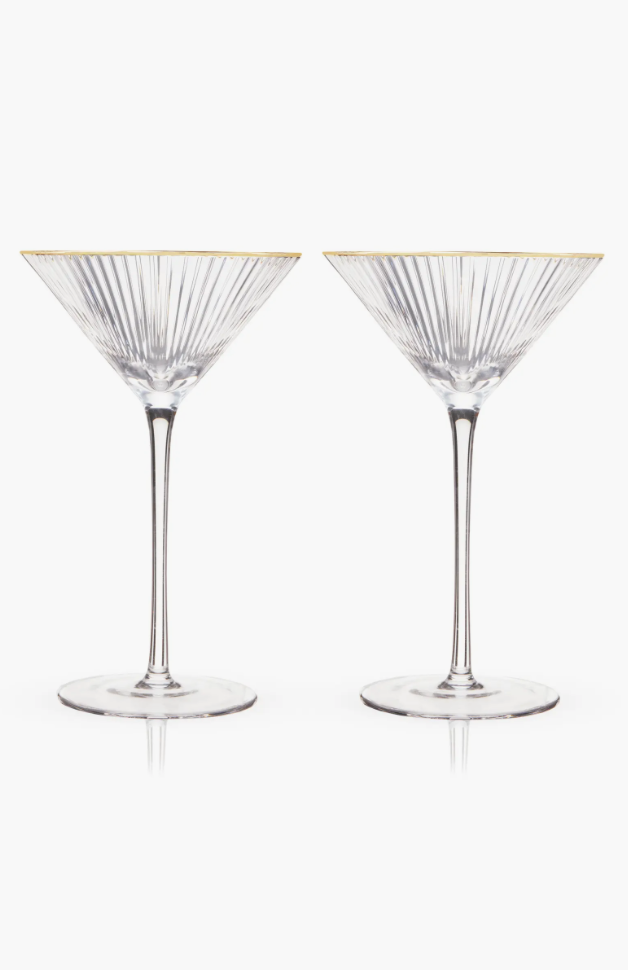 Dry January isn’t a thing in our household, where we’ve become a little obsessed with lemon drop martinis: vodka, Cointreau, simple syrup, fresh lemon juice, and ice. We already had the cocktail kit, but we were missing cute glasses until I found these. I love the delicate ribbed detailing and gold rim, and they always get compliments.
