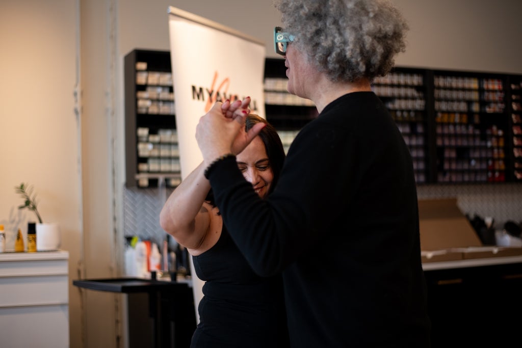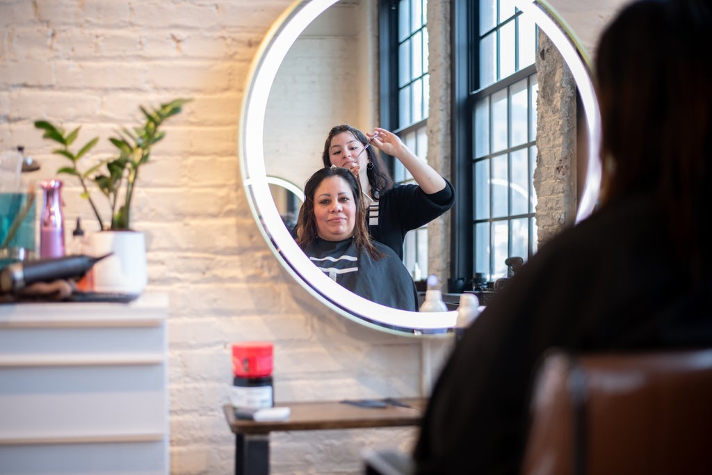 Nail artists are getting inventive with magnets — and even twisted paperclips — to shape cat-eye polish. Now, they’re adding scissors to their toolkits, like Jeanette Flores. The V-shape helps guide the polish into a faux French tip, and repeating the technique can create a striking chevron effect.
