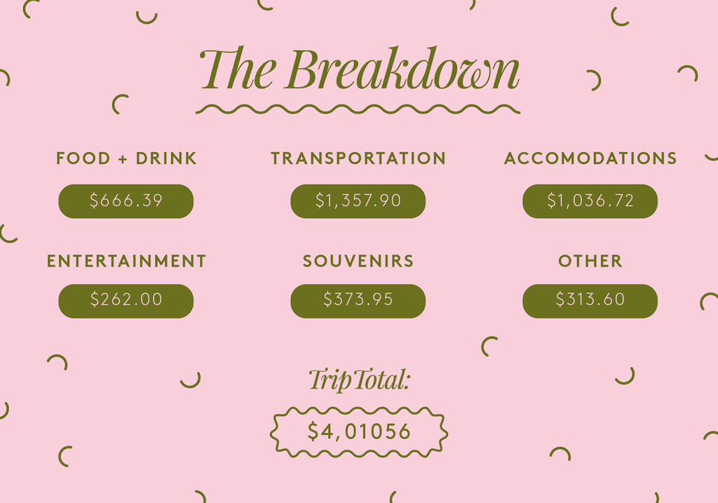 For questions, feedback, or if you’re interested in tracking your travel expenses during an upcoming trip email us at traveldiary@refinery29.com.