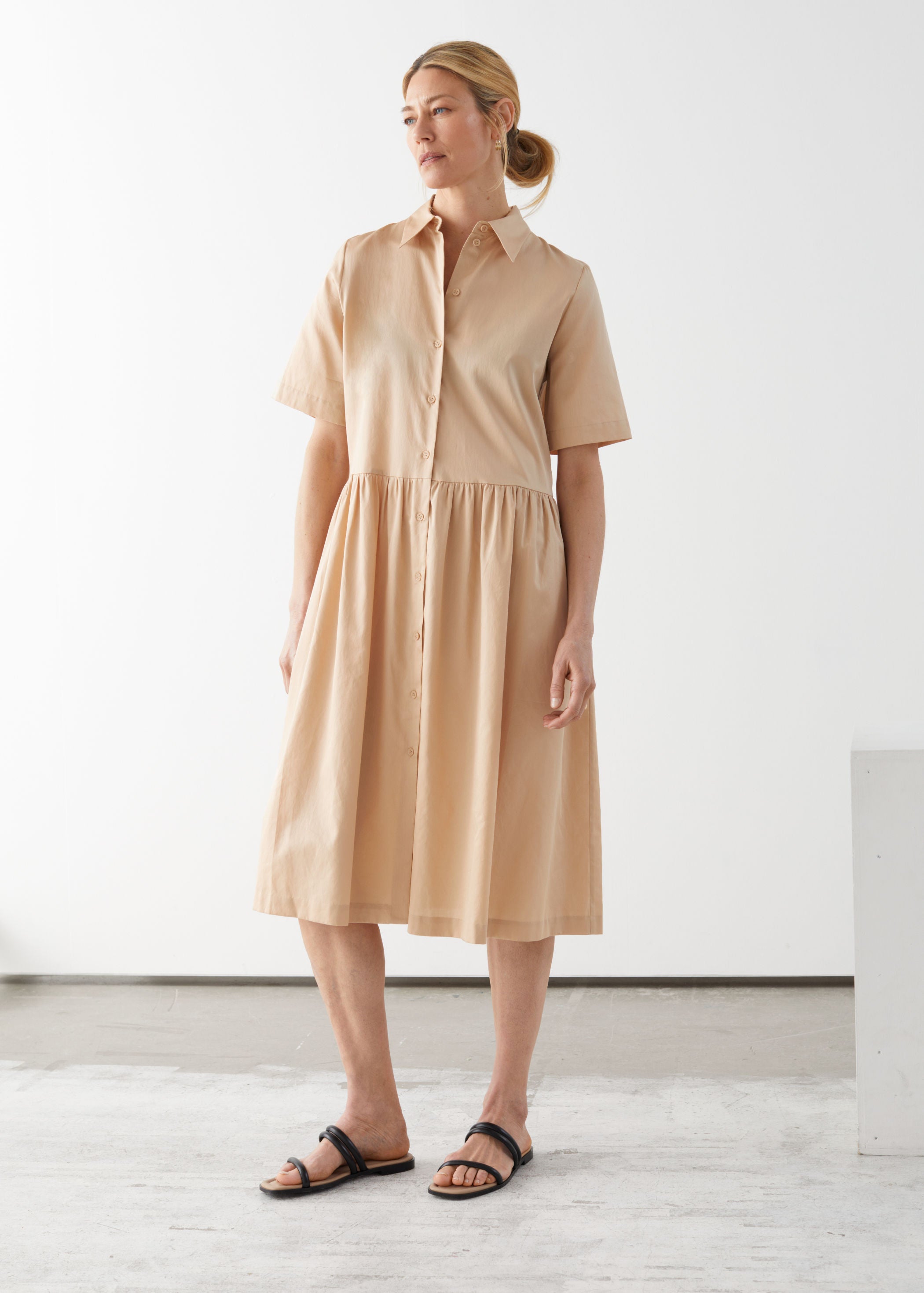Topshop Sand Poplin Smock Midi Dress, $, available at Topshop