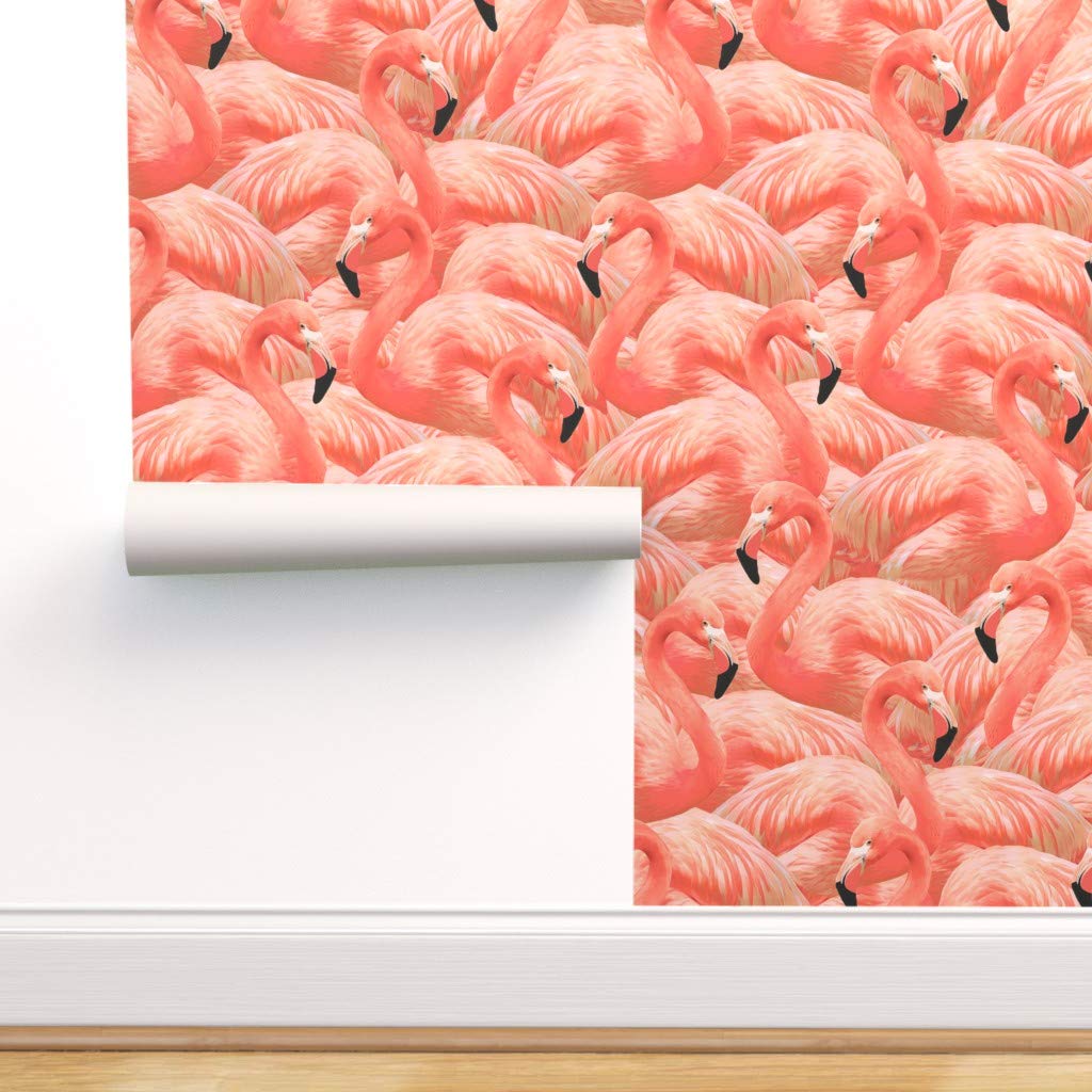 Spoonflower Peel & Stick Removable Wallpaper, Coral Pink Flamingo, $, available at Amazon