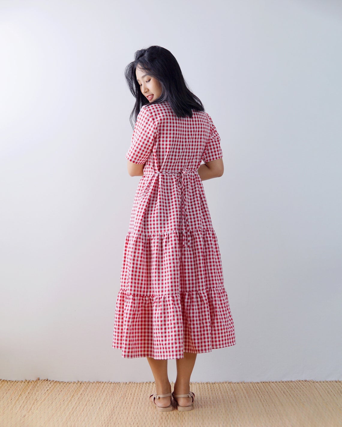 OONTOODstyle Gingham V-Neck Tiered Dress, $, available at Etsy