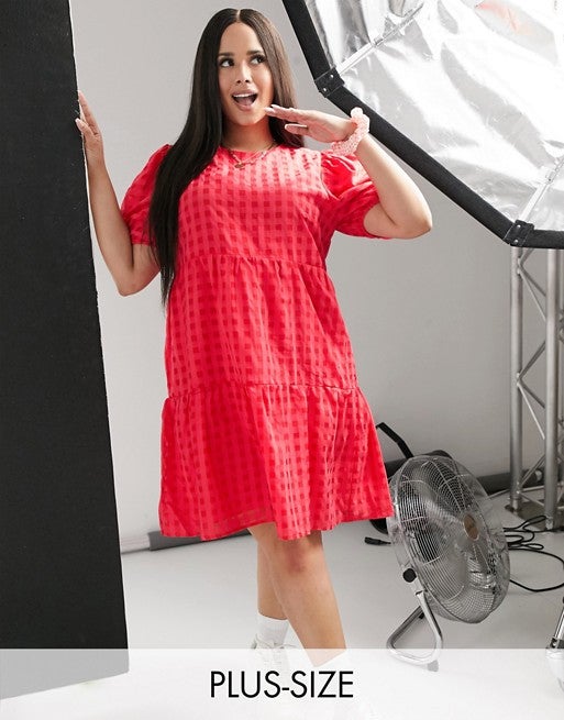 Glamorous Curve Tiered Check Smock Dress, $, available at ASOS