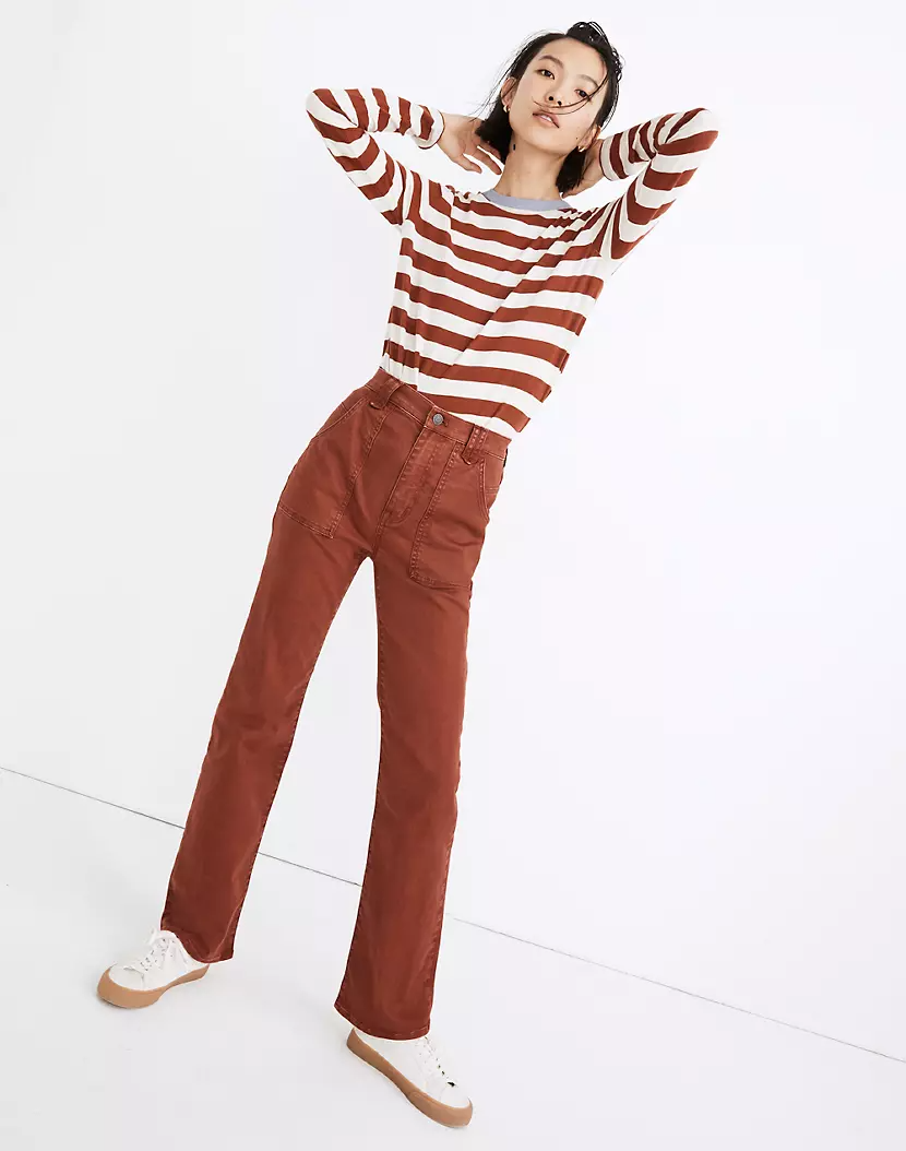 Madewell High-Rise Bootcut Jeans: Garment-Dyed Carpenter Edition, $, available at Madewell