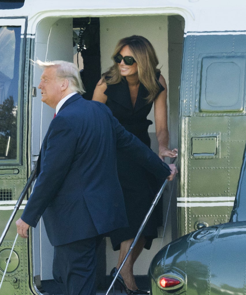 On Thursday, a Melania Trump was photographed boarding Marine One wearing a black sleeveless dress and oversized black glasses. In the now-highly scrutinized photograph, “Melania” is seen smiling and waving. (Theorists call this a dead giveaway that this person was not, in fact, the real First Lady because she was…smiling.) The person in the photo (above) arguably looks quite different than the Melania Trump we’ve come to know and tolerate. And just as quickly as Melania typically recoils from her husband’s touch, the internet began theorizing about Fake Melania.
