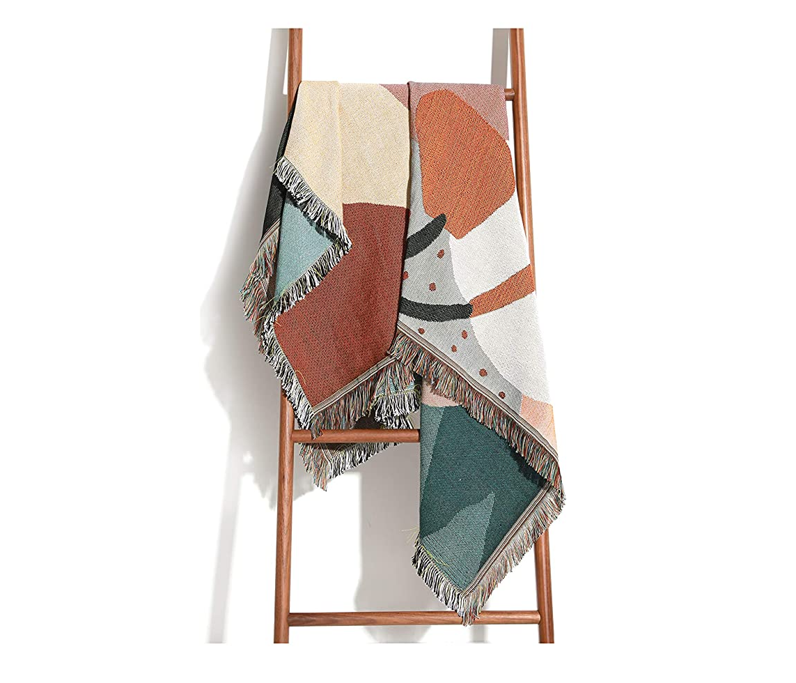 This light cotton-linen throw may not keep you warm, but it will keep your tired old sofa looking fresh-to-death in a funky geometric pattern.