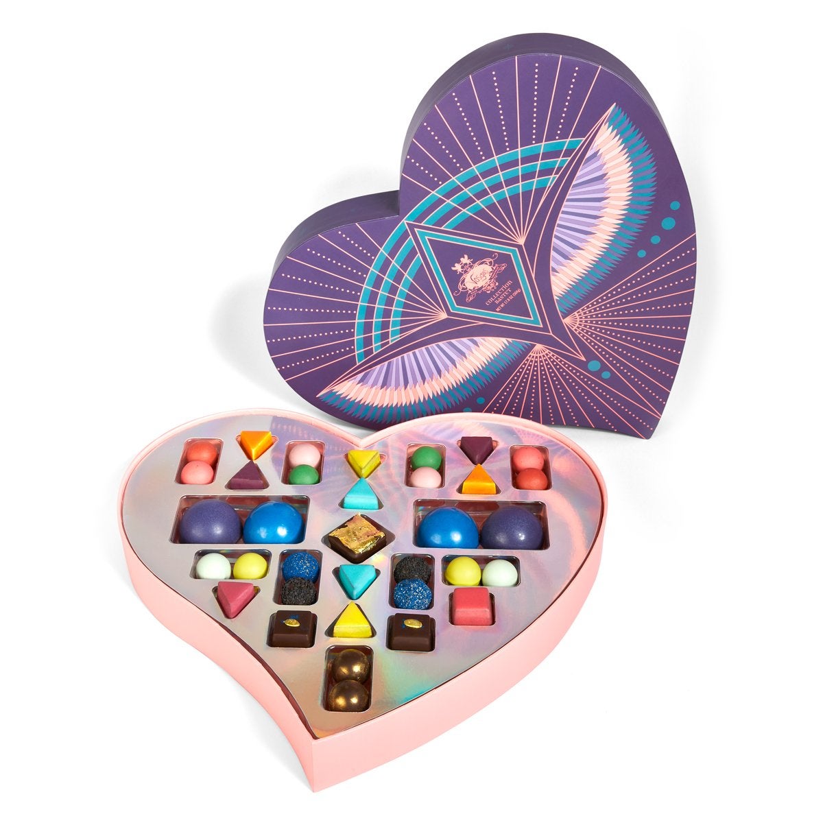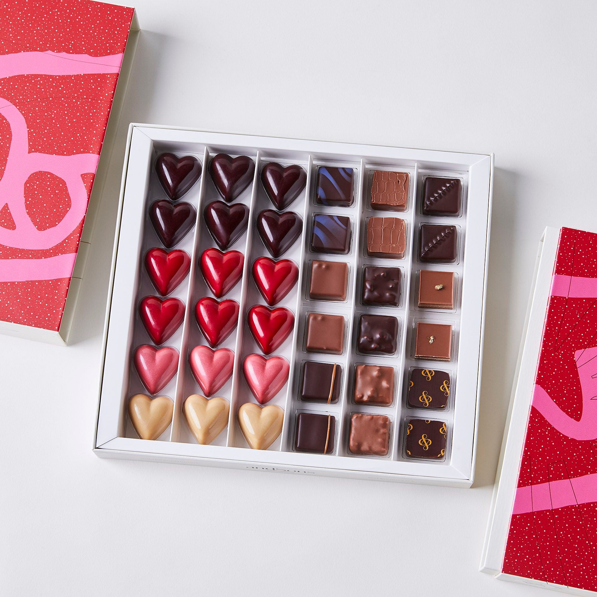 We dug through pages upon pages of sugary gift boxes to unearth the most innovative reworks of the beloved cacao bean that are sure to impress the number one chocolatier in your life. Of course, we also sprinkled in a few of the classics from Ferrero Rocher and Godiva — because we can't deny the comfort in actually knowing exactly what you're going to get (sorry, Forrest). Take a peep ahead at all the chocolatey and romantic gift assortments that are almost too sweet to eat.
