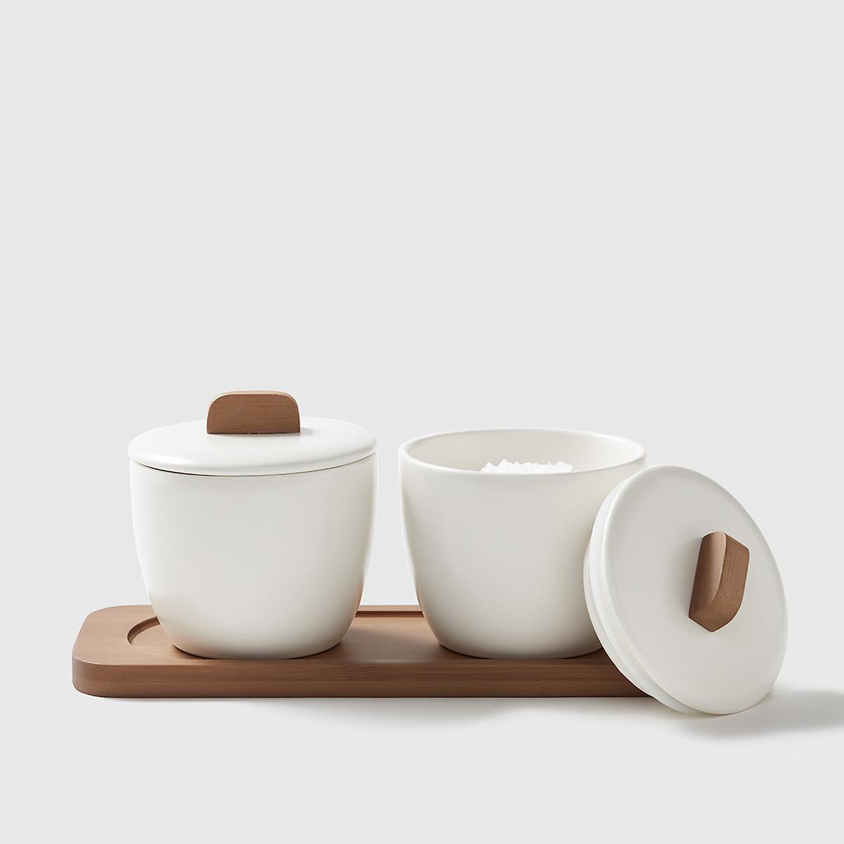 Marie Kondo Marie Kondo Cloud White Ceramic Salt Cellars with Bambo, $, available at The Container Store