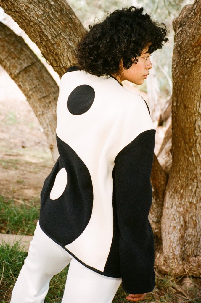“The use of the symbol in jewelry and garments started off as a belief that, based on the implication of Yin and Yang, it will help the wearer balance the good and evil in their lives,” says Wang, founder of the contemporary chinoiserie streetwear brand Dawang. She points to the vibrant, contrasting colors mixed with traditional Chinese fabrics of her Lunar New Year capsule, which launched in January 2020, as an example of the subtle ways this idea of dualism manifests in clothing design. While the Yin-Yang motif itself isn’t visible in her garments, its harmonious energy is at the core of the entire collection. More recently, however, the prevalence of this symbol has been less nuanced as it sweeps our social feeds in the form of manicures and masks while simultaneously popping up across collections by lust-worthy labels such as Staud, Gelareh Mizrahi, Fenty x Puma, and Balenciaga. Beyond its like-bait potential, the mainstream appeal of this black-and-white badge of balance is very much driven by the ancient principle it represents — one that’s been part of Chinese culture since the start of its civilization.
