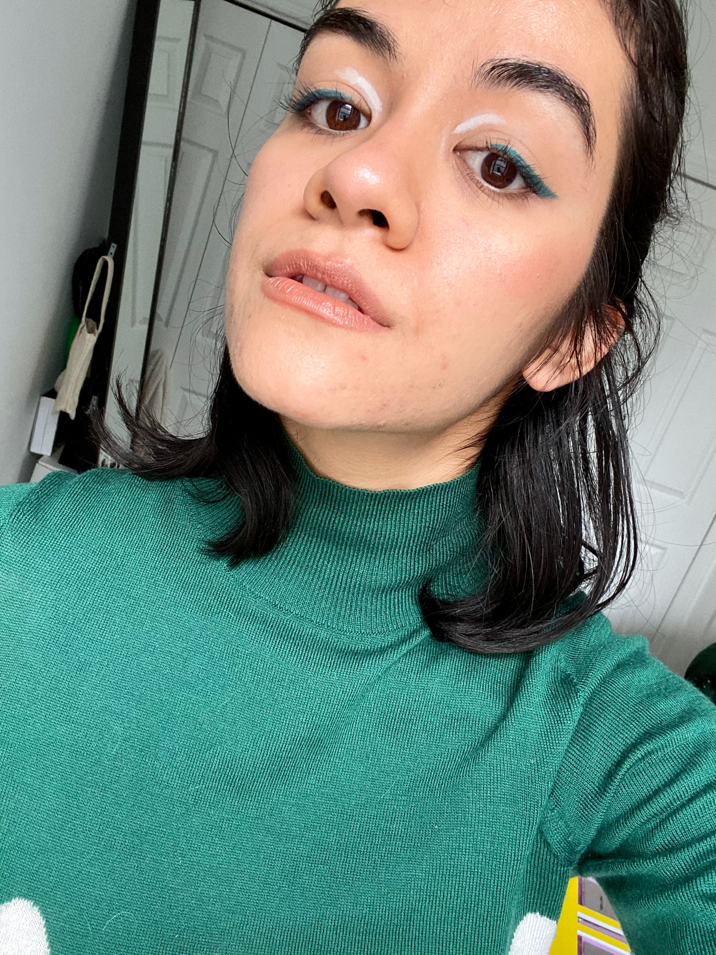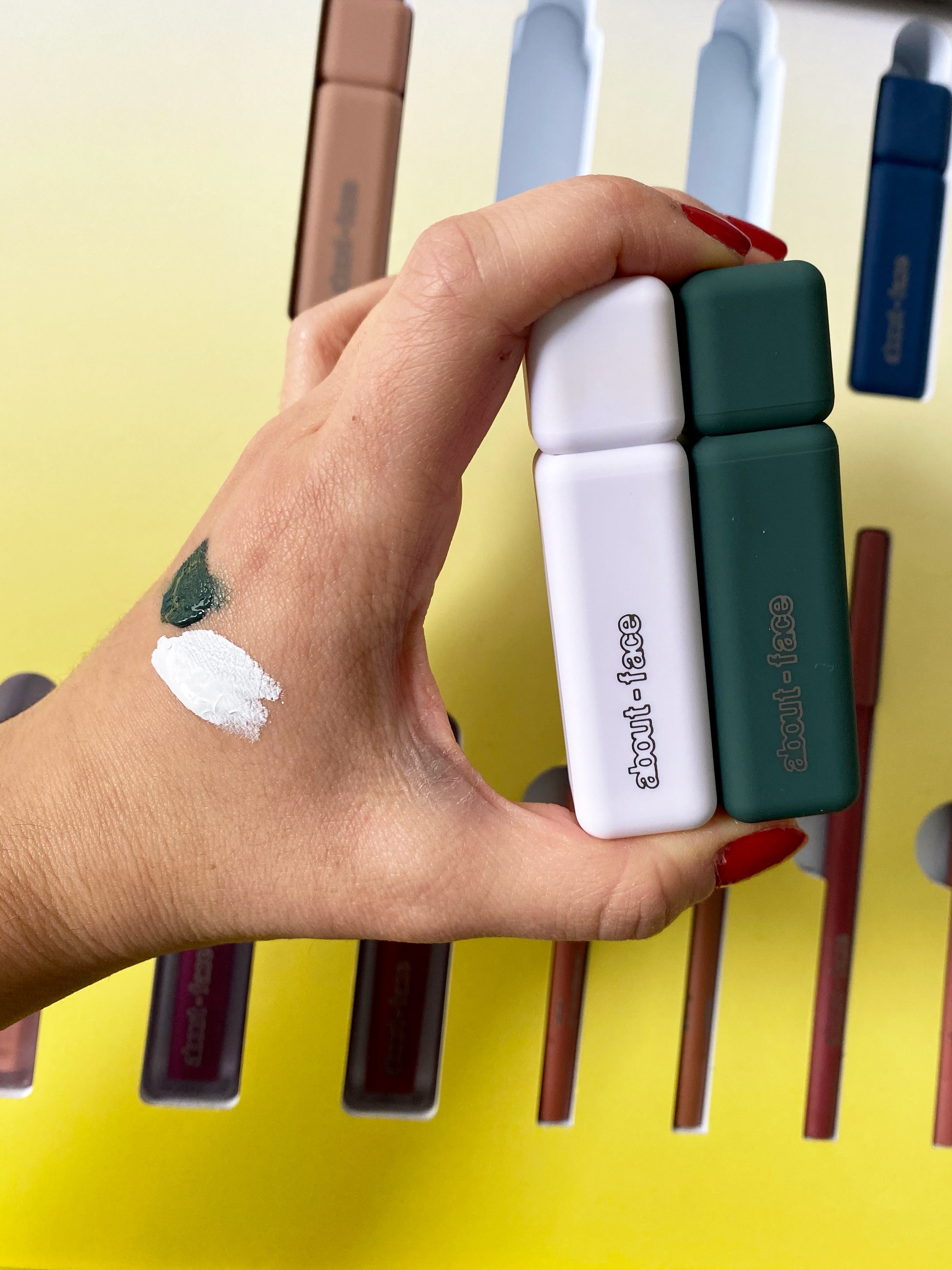These are probably my favorite products out of the entire About-Face lineup. I love experimenting with eye makeup (see my previous adventures with Animal Crossing's Colourpop collab), so these eye paints instantly begged to be played with. After watching this YouTube tutorial from Halsey herself (girl, launch a channel ASAP), I picked up a genius trick: Blend white with any shade to instantly lighten it up for a custom color.