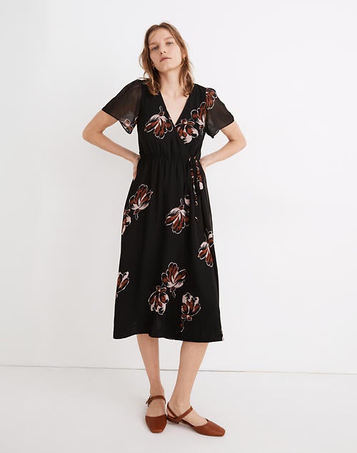 Madewell Georgette Tie-Wrap Midi Dress in Duskblossom, $, available at Madewell