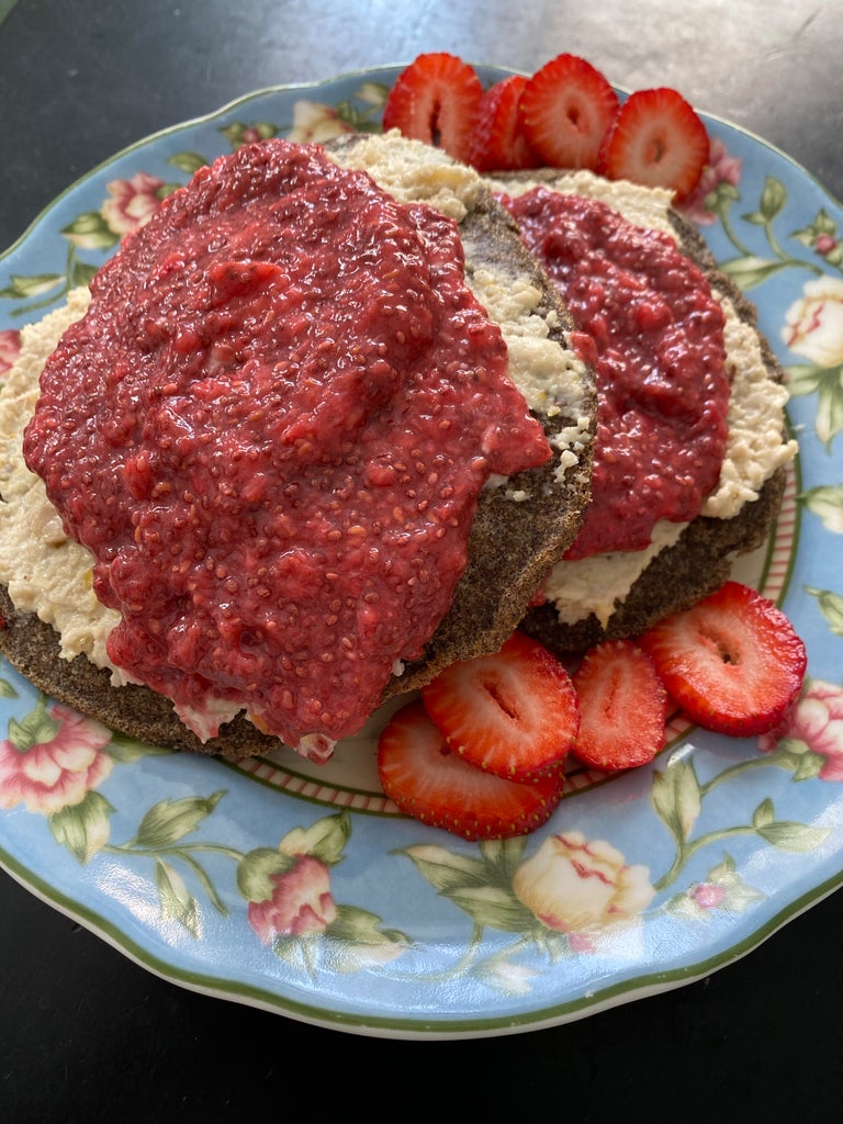 Breakfast: Superfood Pancakes With Chia-Berry Compote & Lemon-Cashew Crème