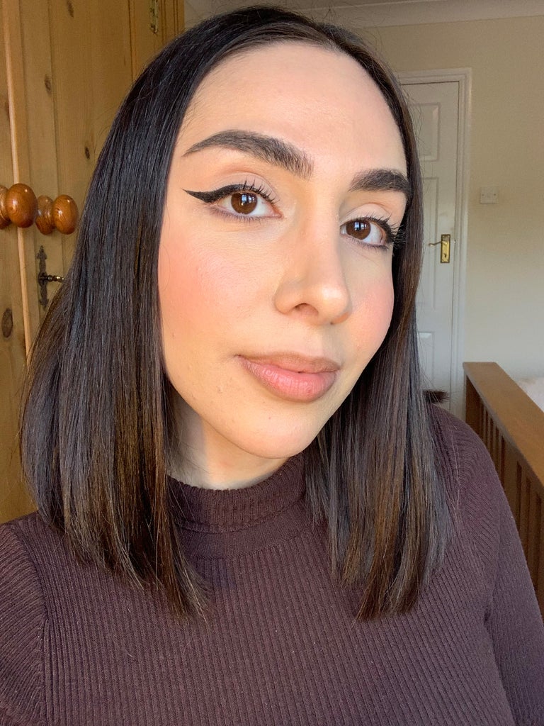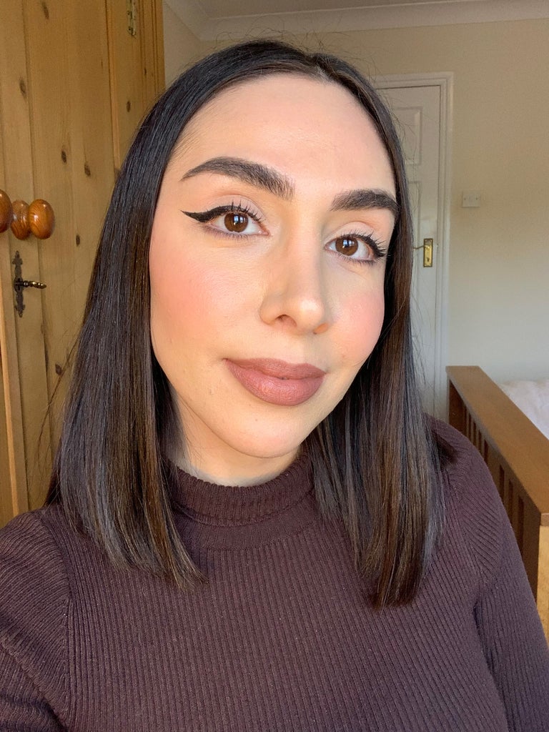 I have a very unsteady hand and even balancing my elbow on a surface made it tricky to achieve a thin line, so it ended up being a lot thicker than I’d imagined. Still, I continued. The tan ran ever so slightly towards the center of my lips and collected in my creases but, because the product is fast drying, it didn’t go absolutely everywhere. I’d suggest leaving your lips free from lip balm or gloss so that the pigment can grasp onto your skin.