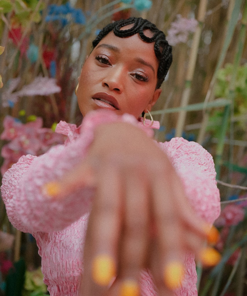 A few years back, Keke Palmer walked into a tattoo shop and had an artist etch the word “perception” in small block letters across her left hip. Then she had them cross it out. “At that time, I was going through a very big change,” Palmer recalls over the phone early on a recent Friday, her morning voice easing into her signature mile-a-minute chatter. “I had just done Broadway, had just cut my hair off, I was getting a bunch of tattoos. A lot of people always had something to say about me and my experiences, not understanding that this is my life.” Palmer was fifteen years into near-nonstop hustle at that point, still finding her footing as a grown Black woman in Hollywood who’d come from Nickelodeon iconography. Palmer wanted a permanent reminder to craft her life for herself, rather than in reaction to others’ expectations. Her message is even clearer now: She does not wish to be perceived.