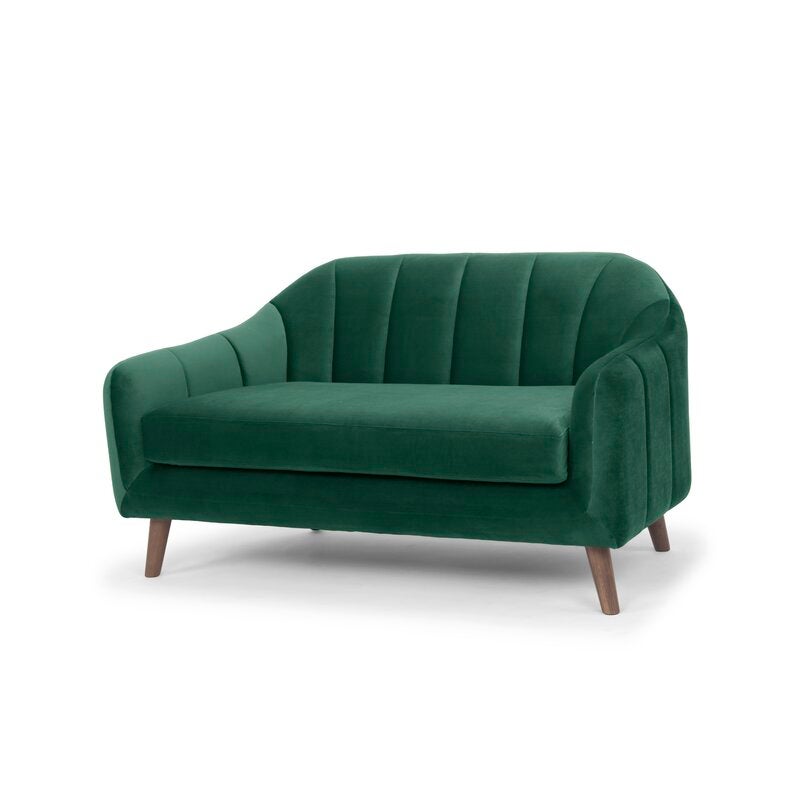 Trend alert: plush velvet living room seating. This sweet and petite barrel-backed loveseat features modern channeled tufting and is upholstered in deep emerald velvet fabric. It's up to 65% off for Way Day and we're sure it won't be in stock for long.
