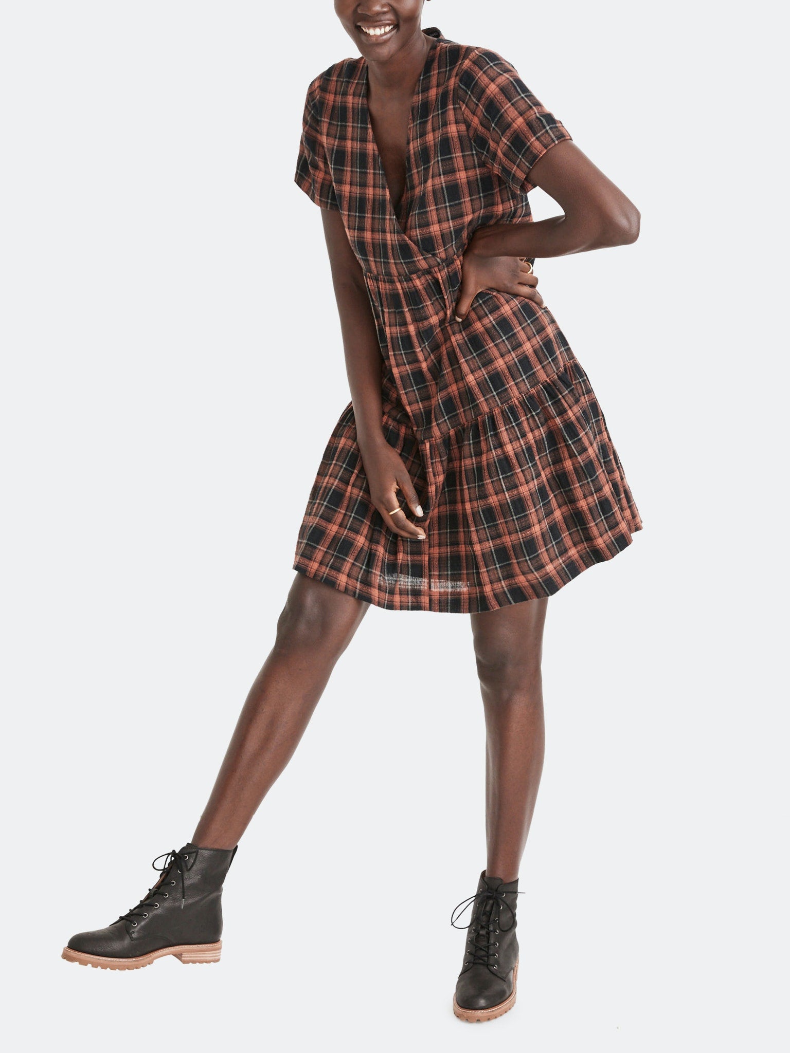 Madewell Short Sleeve Tiered Faux Wrap Mini Dress, $, available at Verishop