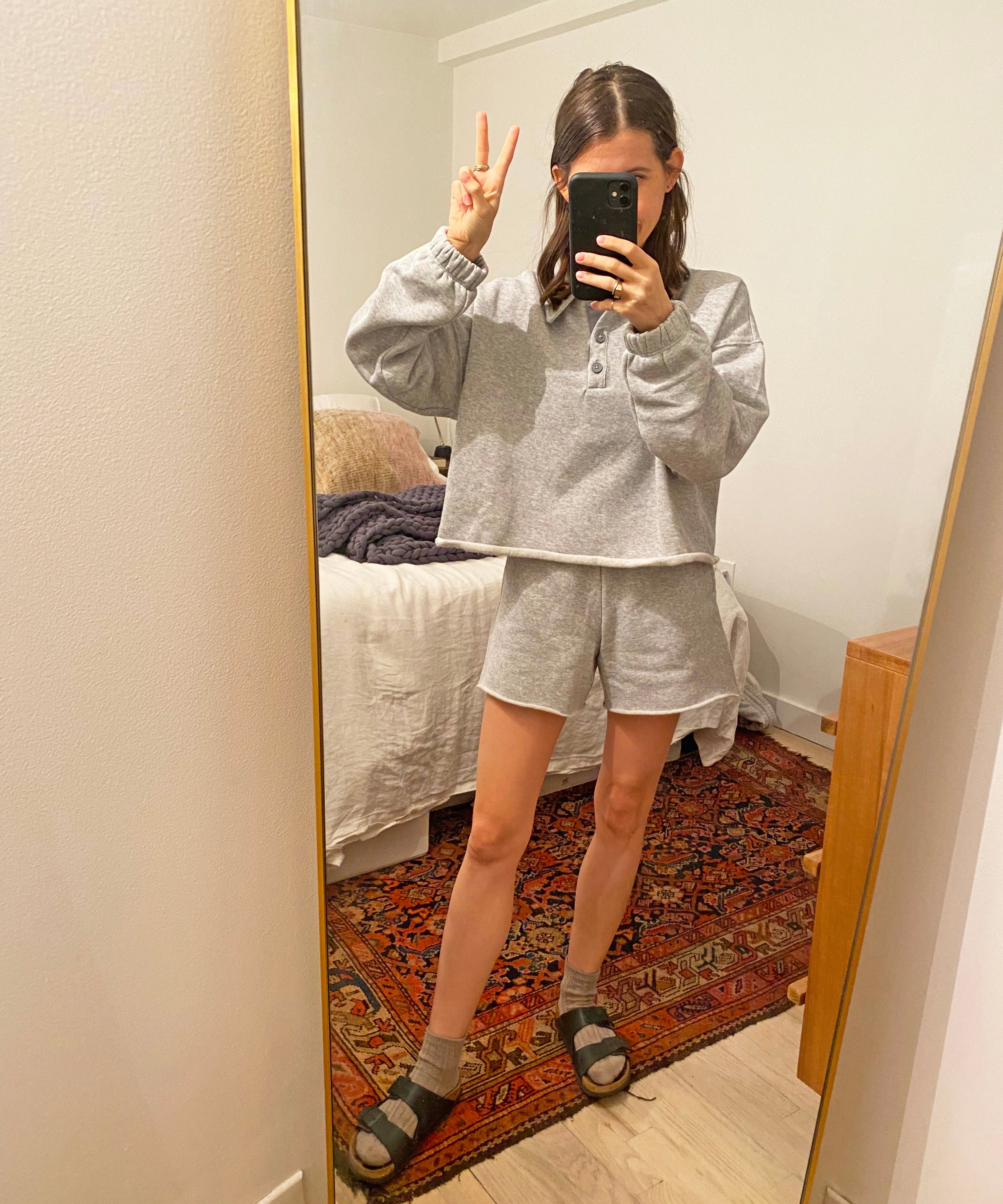 "I was getting super hot in my apartment wearing a full matching sweatsuit, so I picked up this shorts version from Aerie. The price point is great, it’s super soft, and will be an A+ spring WFH lewk." – Kate Spencer, Creative & Updates Editor