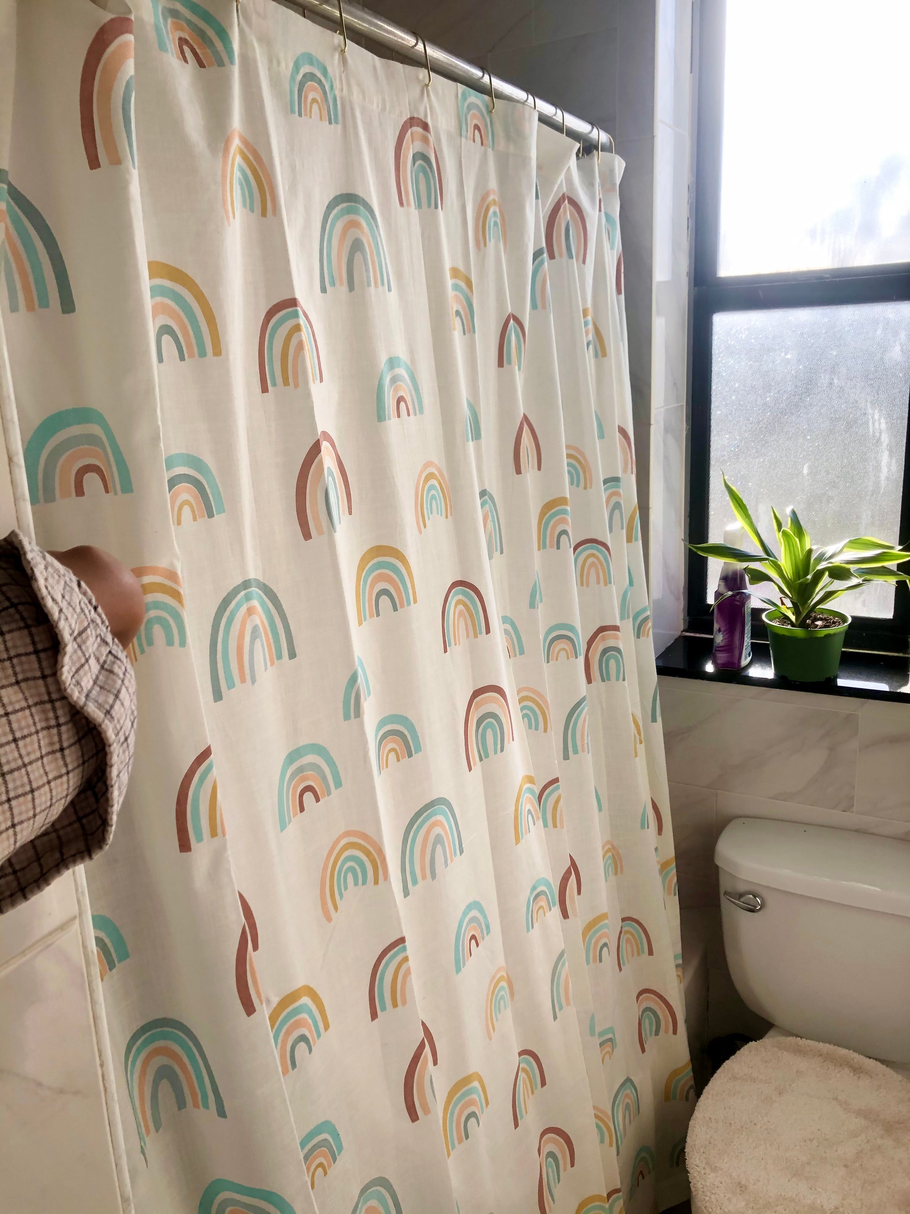 "Finding an aesthetically pleasing shower curtain that doesn't cost an exorbitant amount or feel like a piece of printer paper is oddly cumbersome. I snagged this one from World Market (for under $30!) and I'm obsessed with how it's covered in rainbows but has muted hues so it doesn't overwhelm my itty bitty bathroom. It has a cloth-like texture and is 100% cotton which makes it flow nicely over the tub. I definitely recommend getting a liner as well for the ultimate cute shower experience." – Alexandra Polk, Lifestyle Writer