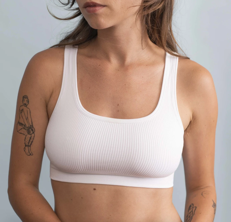 "I've been living in this newest bra debut from female-founded & run brasserie brand, Harper Wilde. It's so soft, supple, and stretchy that sometimes I forget I'm wearing it. The feel & fit of this seamless ribbed wonder I'd describe as if a scoop-style sports bra had a baby with a bralette made from your favorite worn-in t-shirt. Would I go running in it? Probably not. But, it's not called The Run for a reason. If you've been searching for the ideal lounge-around support for your ladies, this is IT." – Elizabeth Buxton, Editor