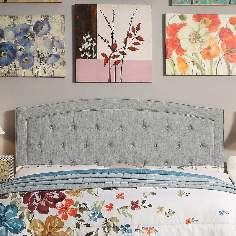 "So... kind of sketch, but I'm fine with it — seems like this headboard I bought has been repackaged as a teen brand? It's definitely the exact headboard I purchased for my bedroom under a different Wayfair brand. Despite the rebranding (which I'm not mad at, I'm sort of a teen at heart), this piece of furniture is great quality, was a cinch to attach to my bed, and looks handsome in my room especially with one of my kitties perched on it (yes I am baiting you to peep my cat sitting on this headboard.) The fabric is not cheap looking at all despite its very affordable price." — Marissa