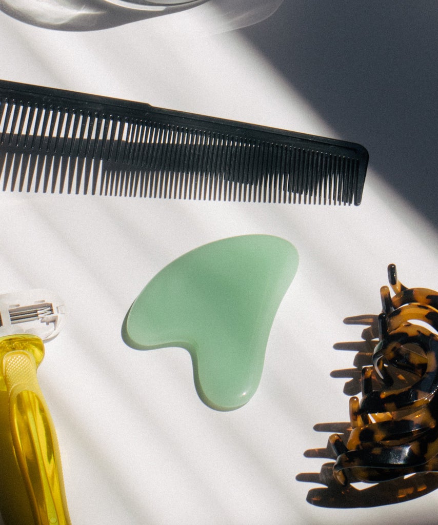 Gua sha, pronounced gwa sha, is a treatment that involves gently scraping or pulling a flat jade or rose-quartz stone along the skin to relax facial muscles, boost circulation, and encourage lymphatic drainage. Many of us have been put on to the gua sha in recent years, but it’s a time-tested treatment in traditional Chinese medicine. Originally used to treat viruses in the body and heat stroke, the gua sha stone was later discovered to have cosmetic benefits as well. Studies have shown that it helps increase circulation, which aids in the skin’s ability to purge dirt, sebum, and buildup in the pores that leads to acne.