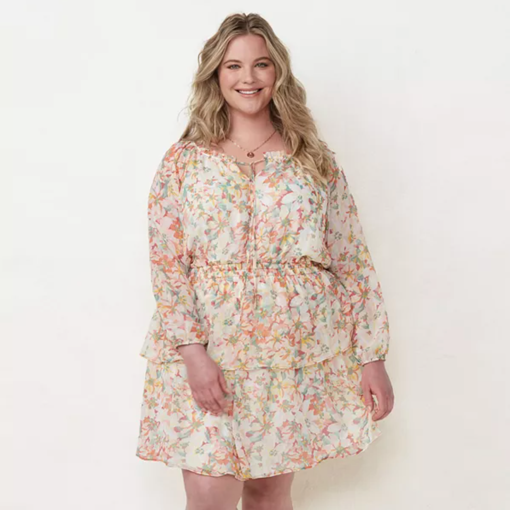 LC Lauren Conrad Plus Size Long Sleeve Mini Peasant Dress, $, available at Kohl's
