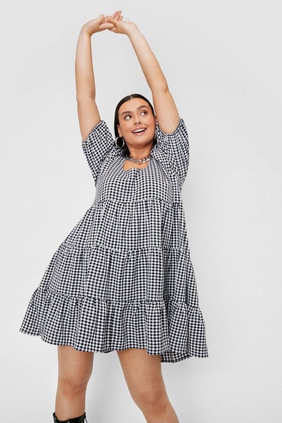NastyGal Plus Size Gingham Print Tiered Mini Dress, $, available at NastyGal