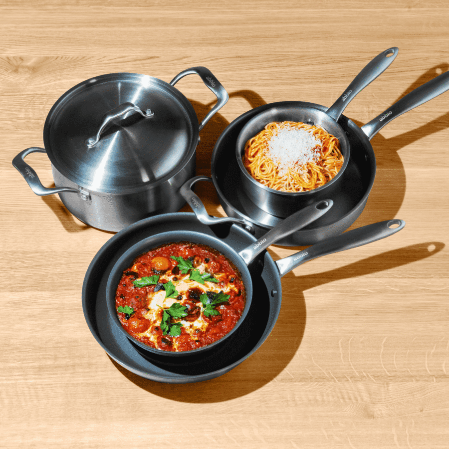 Home Cooks Say: "Best pans ever for an electric stove. I feel safe and secure because my pans aren’t sliding all over the place because Abbio designs their pans to sit flat and firmly on your stove, which provides even cooking as well. Great for braising meats like never before. I was super happy when I first received them and placed them on my stovetop and saw how well they sat on my glass stovetop."