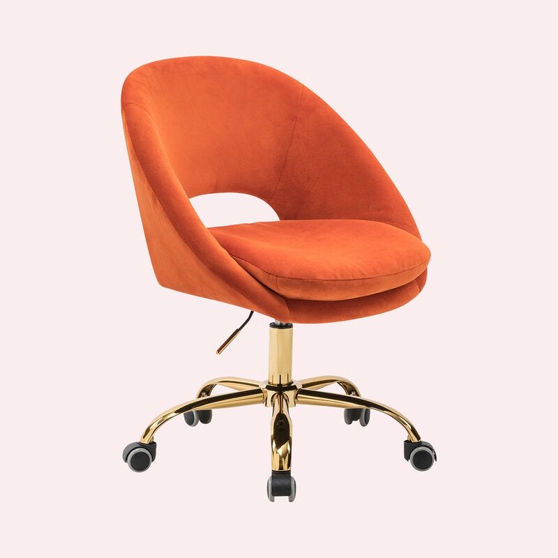 This vibrant retro-style task chair is ready to make an eye-catching statement in your space while also offering super-comfy support to your butt with a little extra velvety cushioning built into the seat.