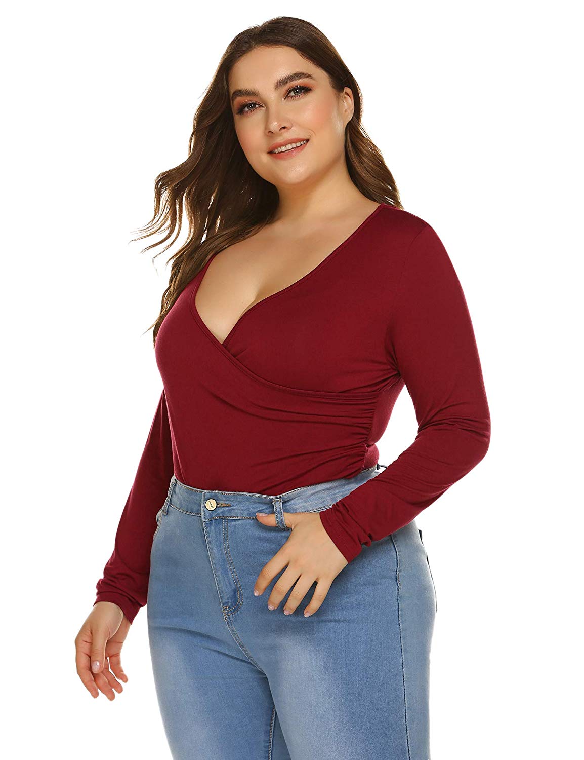 In'voland Plus Size V-Neck Bodysuit, $, available at Amazon