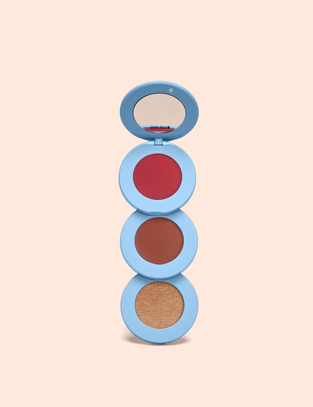 Another travel beauty tip: Stackable and/or foldable products are your friend. I love these complexion wheels that come with a blush, contour, and highlight shade — but fold smaller than a hockey puck.