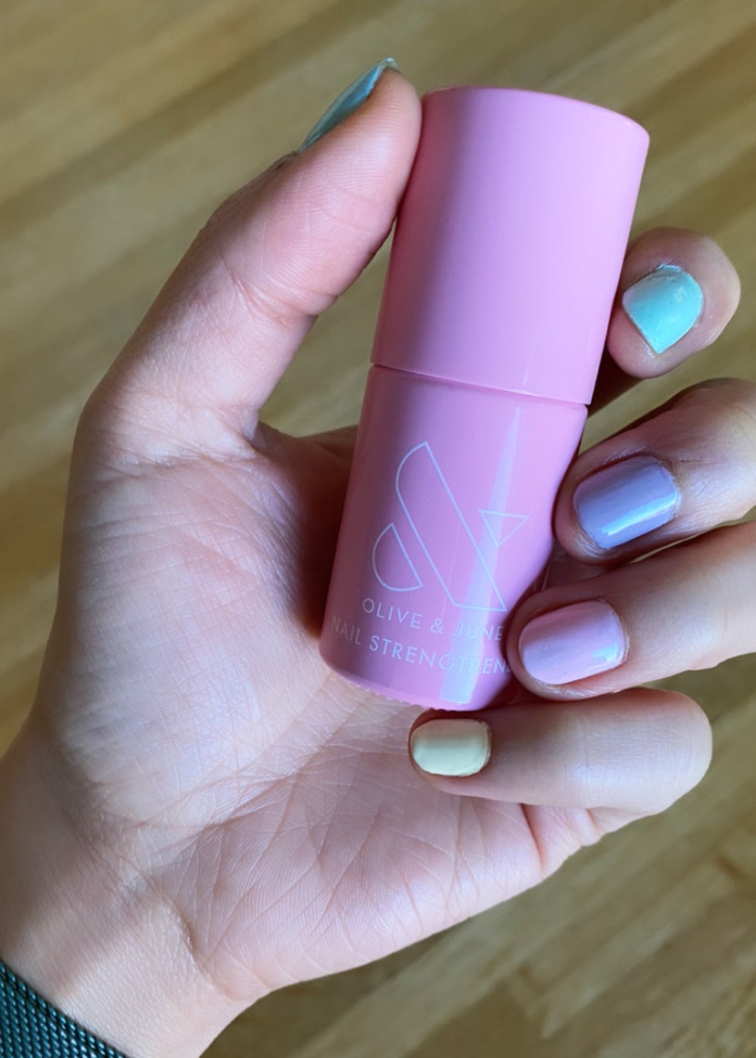 "Despite winter being my favorite season (don’t @ me!), I’ll be the first to admit that the months of cold, dry weather have not been kind to my nails. I’ve tried various nail “masks” and am good about my cuticle care, but was still dealing with brittle, peeling nails when Olive & June’s new nail strengthener came into my life. It’s not like any other treatment I’ve tried before — you can use it nightly as an intensive regimen, or as a first step before polish. I’ve been using it for about two weeks (including under two manis) and am already seeing stronger, happier nails as a result." – Karina Hoshikawa, Beauty & Wellness Writer