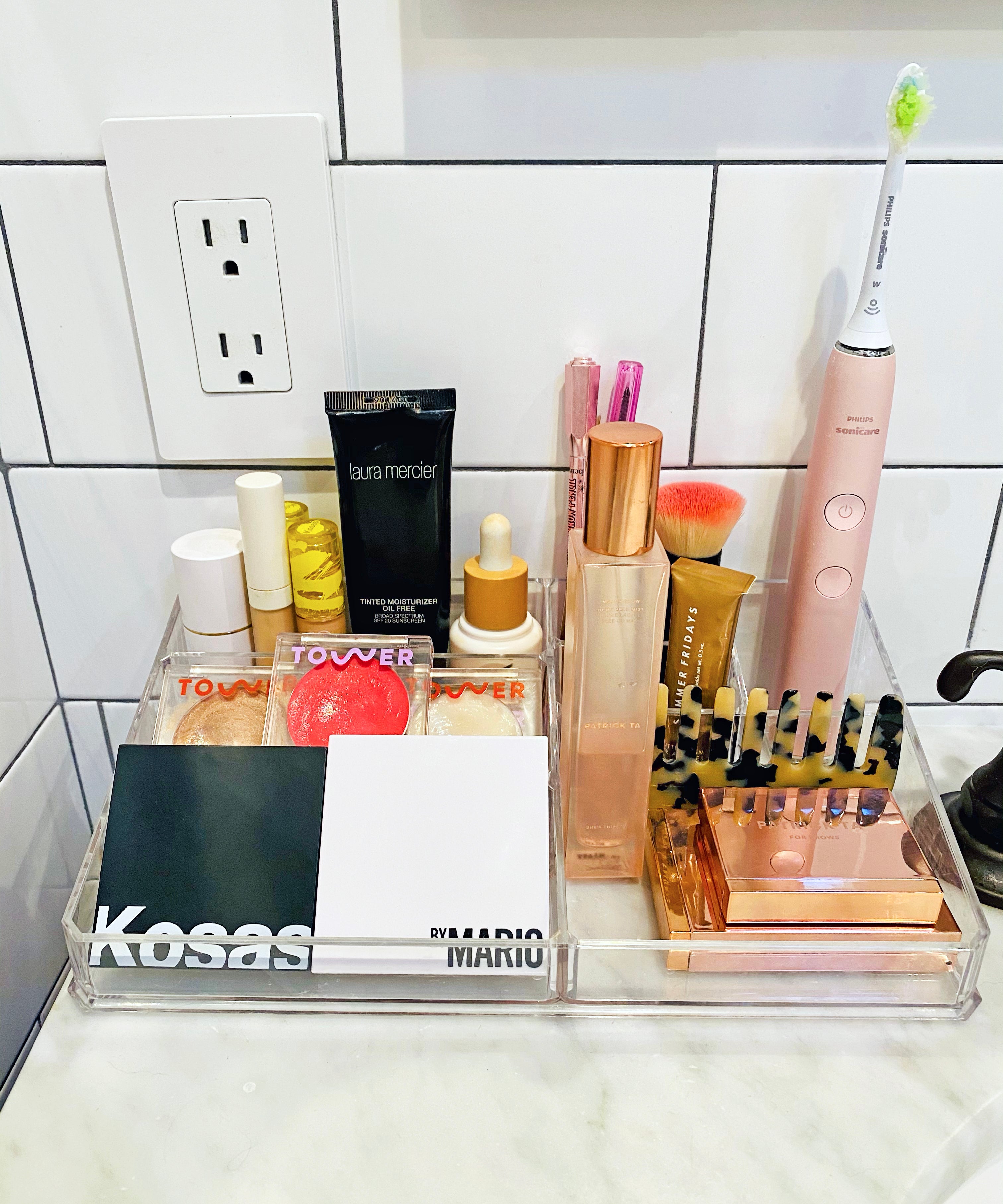 "After moving to a home with limited bathroom drawer storage, I decided to hunt Amazon for the most economical and aesthetically minimal countertop solution. I settled on this $13 clear acrylic tray due to its near 1k favorable ratings and close to $10 price tag. It's been game-changing for organizing my everyday essentials. Before this, I kept my beauty routine and toiletries all lumped together inside a cute wicker basket that always ended up looking like a hot jumbled mess — but now, each of my go-to products (including my toothbrush!) has its own neat and tidy place thanks to this gem's nine separate storage compartments." – Elizabeth Buxton, Editor