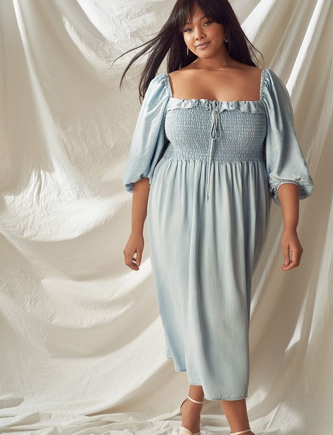 Eloquii Smocked Bodice Chambray Dress, $, available at Eloquii