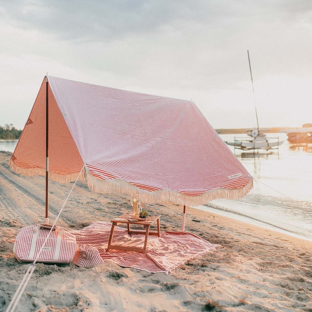 What's a beach trip without a few Instagram-worthy photos to give those at home a little dose of FOMO? We're big fans of Business & Pleasure Co.'s beautiful, vintage-inspired beach accessories, and this pretty tent doesn't disappoint.