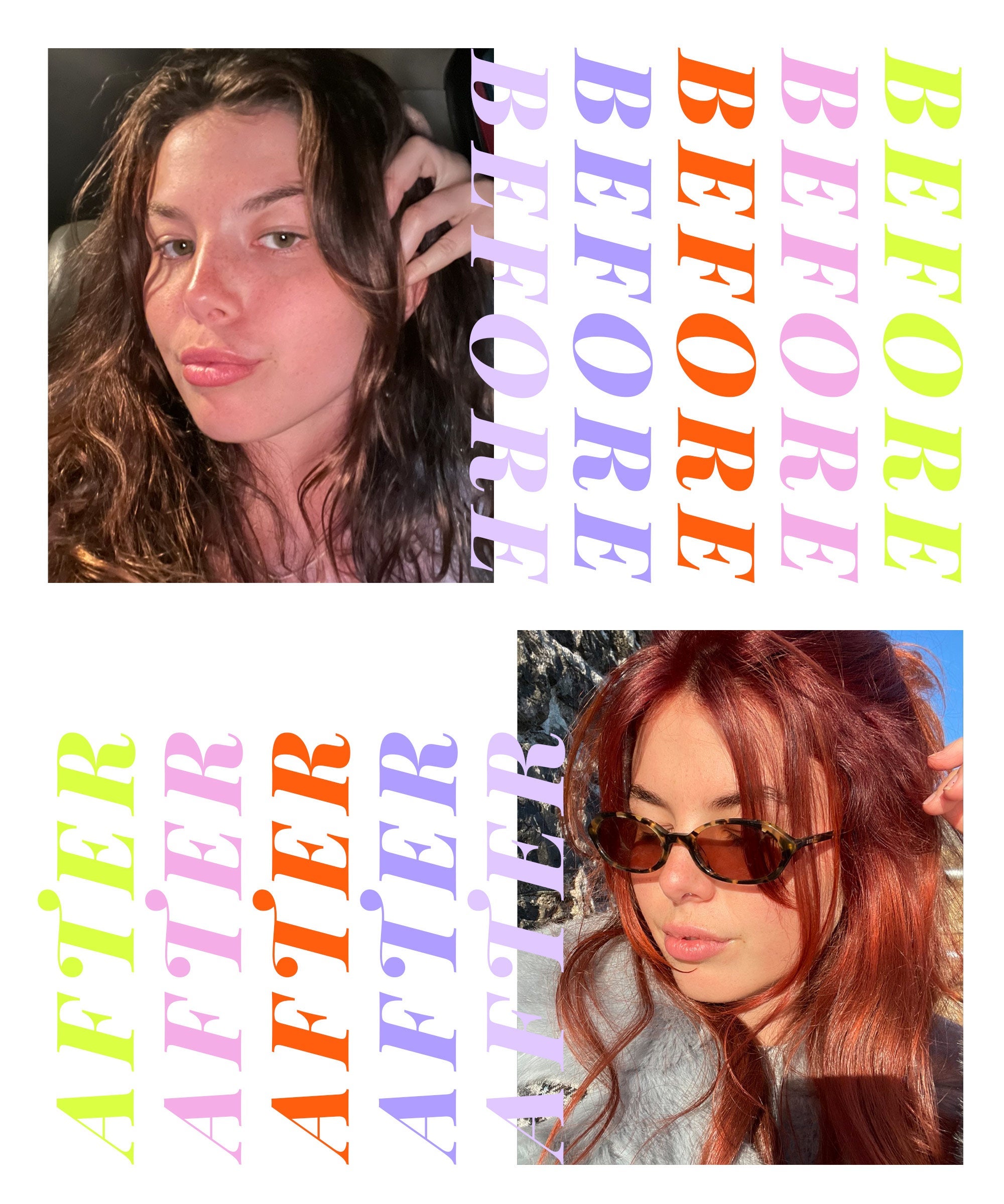 Because my hair originally is a very-dark brown, it required a lot of bleach, which actually really burned my scalp. But I knew the pain was worth it because I had been manifesting the red for a very long time. Something about being in lockdown for month after month just made me think: Fuck it, crisis mode, and that’s how I ended up wanting to be a redhead.