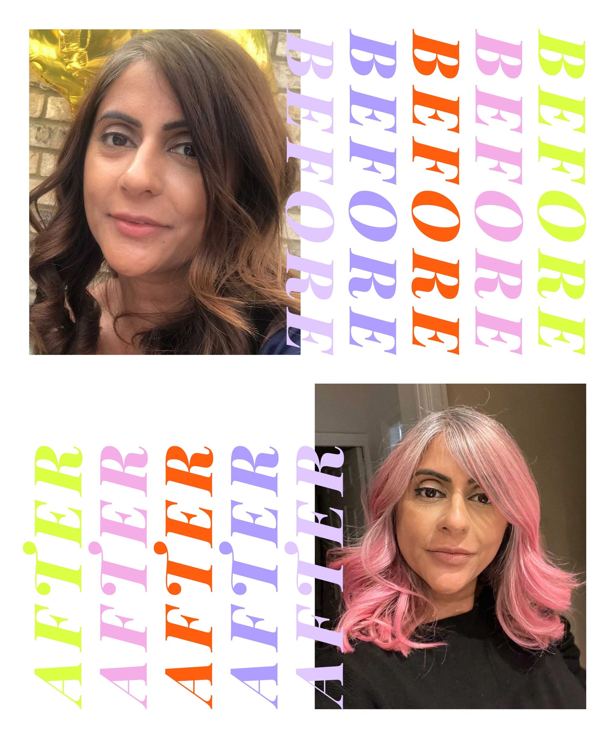 My confidence has grown and I no longer feel the need to wear a hat to cover my grays. People often think my gray-to-pink hair is an effect that has been created, not realizing it’s my actual gray roots! It’s the best decision, and although the journey is not fully complete, I can’t wait to keep experimenting with different colors that work with my natural gray hair."