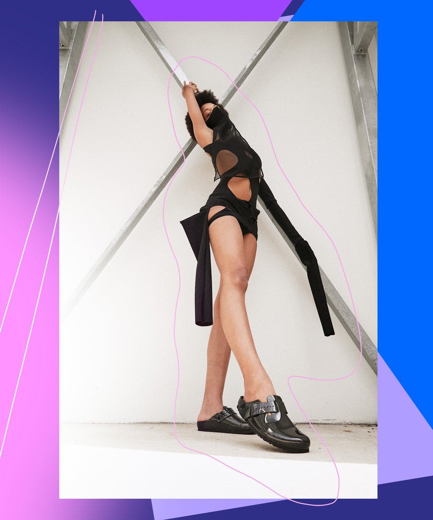 This season, the designer made slight tweaks to Birkenstock’s “ugly” shoe signatures, lengthening the straps on the Arizona sandals and Boston clogs — a stylistic move he introduced in Season 1 — and using shiny leather, rather than the soft, suede iterations you likely wore in middle school (with leg warmers and jean skirts, of course). “I’ve [also] added a sprinkling of riveting on sandals that could have come from one of my favorite Fritz Lang movies,” Owens said in a press release, referring to the Austrian-American filmmaker from the ‘30s and ‘40s.