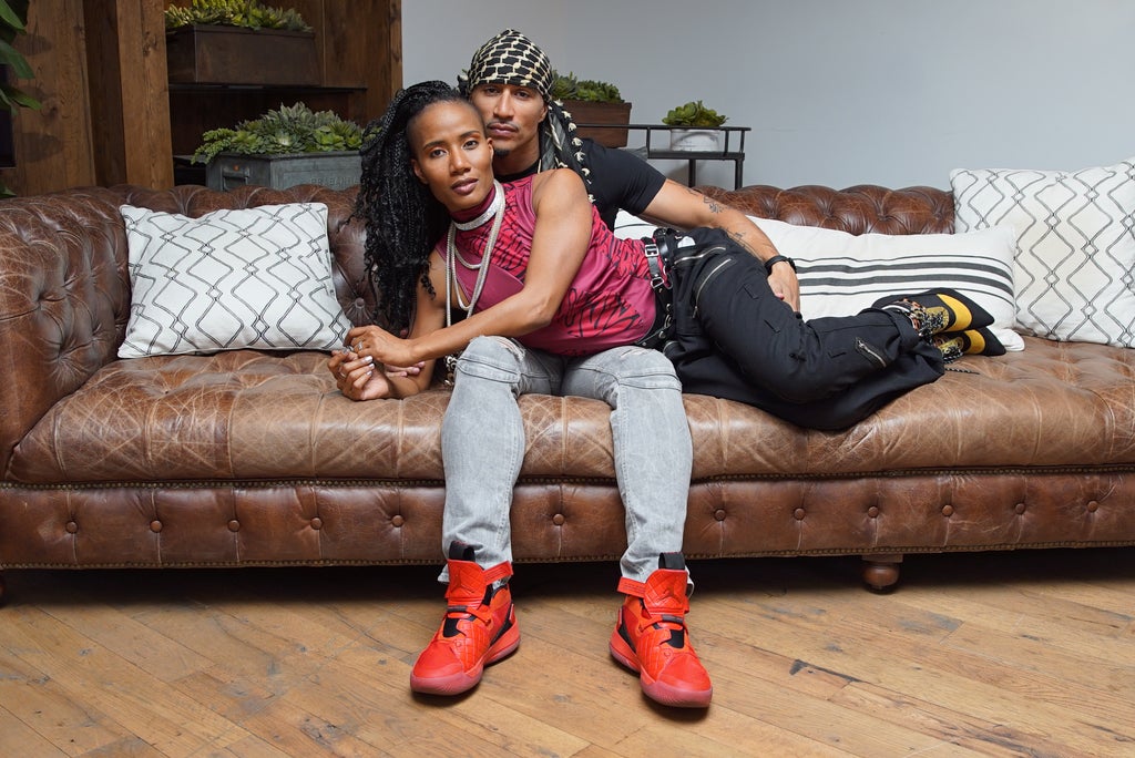 Though King and Jasmine have been building their love story for a decade, you’d think they were in the early throes of passion when they stopped by the Venice office of Refinery29 Unbothered’s parent company, VICE. The incredibly affectionate pair couldn’t keep their hands (or mouths) to themselves as they taped a segment of R29Unbothered’s IGTV series, Dear Black Love, which explores Black romantic relationships. Touching, kissing and caressing each other as they talked about their 10-year journey, the master fetish trainers had to restrain themselves after giving a steamy demonstration of the flogging and paddling they do on tours across the country, teaching others how to safely and consensually explore their fetishes, by themselves or with partners.