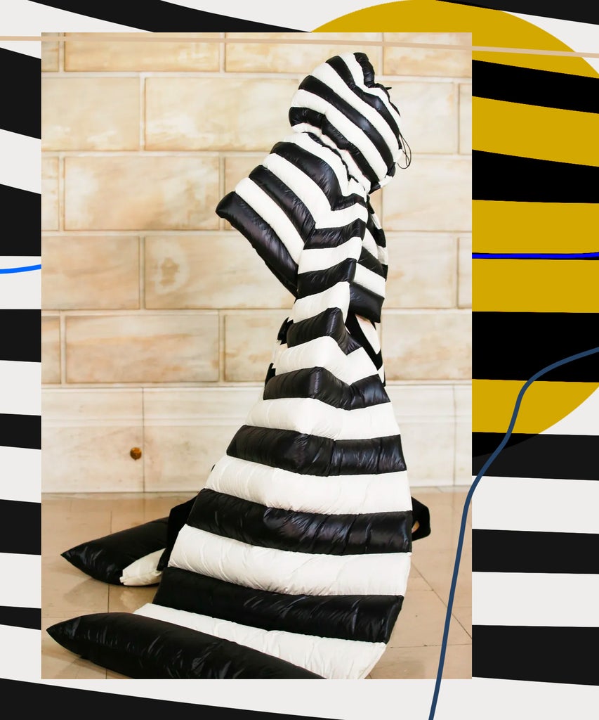 The stars of the 69-look collection were the gowns. But they weren’t just any gowns. This season, Jacobs designed a bevy of sleeping bag-esque dresses that put last winter’s puffer coat selection to shame. The look extended to the accessories: Down hoods and shawls draped behind models like Gigi Hadid and Kaia Gerber as they walked the runway, almost unrecognizable behind the pillow-y fabric draping their bodies.