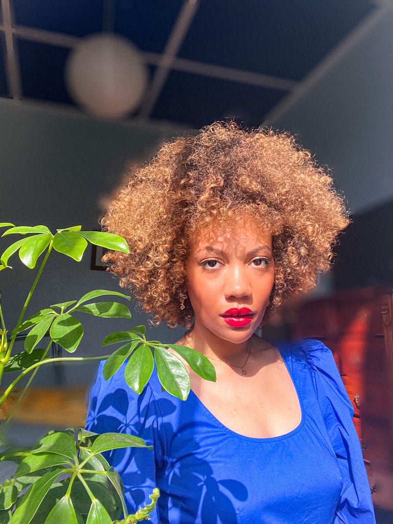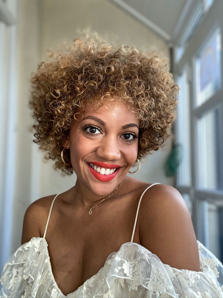 The truth is, though, when your hair is damaged, it simply won’t grow healthy. The realization is a tough pill to swallow. There was always a fear in the back of my mind that people wouldn’t like me anymore if I cut all my hair off, or that I wouldn’t look desirable to men when dating. Why? Throughout my life I’d been told that my curly Afro was unprofessional, unkempt, or looked better straight. The self-hate was real, not to mention painful. For over a decade, I never saw my hair in its natural state. It was either dyed blonde or black, straightened, or covered with wigs and weave. But when the pandemic hit, everything changed. I caught COVID and it was the catalyst to convincing myself that just as I would get healthy, my hair would grow again, too. So I woke up one morning and chopped it all off in the bathroom, with absolutely no regrets.