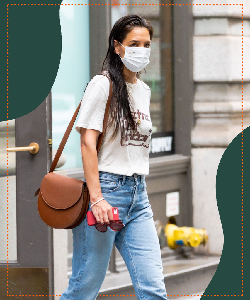 Not only are Holmes’ jeans baggy but they are also mid-rise. Whereas high-rise jeans were once the end-all-be-all style, these days, mid- and low-rise jeans are seeing an uptick in popularity again. From the photos, Holmes looks to be airing on the side of caution, by wearing her jeans in the mid-rise range. But with celebrities like Sophie Turner and Bella Hadid both giving the aughts-era silhouette their stamp of approval, it likely won’t be long before more follow suit.