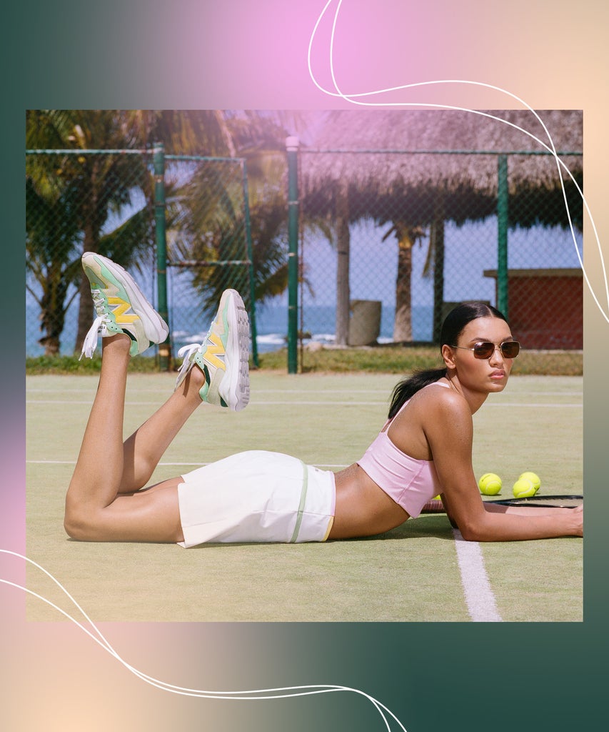 The two It brands last partnered in September, when Staud updated the sportswear brand’s classic 327 sneakers with on-trend ‘90s-inspired details like the burgundy New Balance logo and a gum sole (even Katie Holmes was a fan!). This time, they are taking a jab at the season’s biggest trends: tenniscore and corsets, derived from TikTok and Bridgerton, respectively.