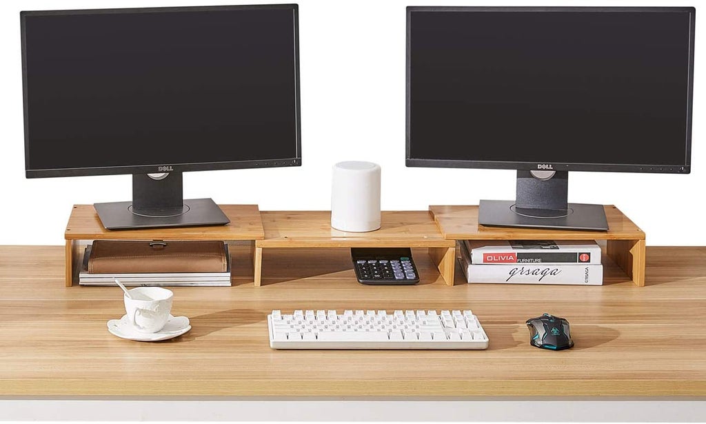 Amazon Bamboo Dual-Monitor Stand, $31.99