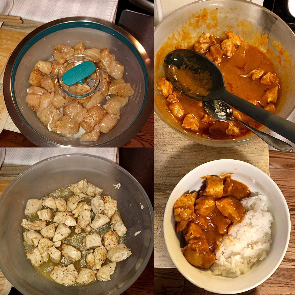 Next, I moved onto chicken, which I was tentative about. (The thought of consuming raw meat makes me nauseous but I also am not of big fan of dried-out poultry.) However, I was pleasantly surprised to find fresh & juicy chicken descend from my microwave. I’ll admit, I think I overcooked it out of caution by baking for a total of nine minutes when I should’ve stopped at seven — but, being able to get back to work while my meal rotated away in the microwave was fantastic. There was no oven to heat up, no stove to attend to, and my amateur chicken tikka masala exceeded my expectations.
