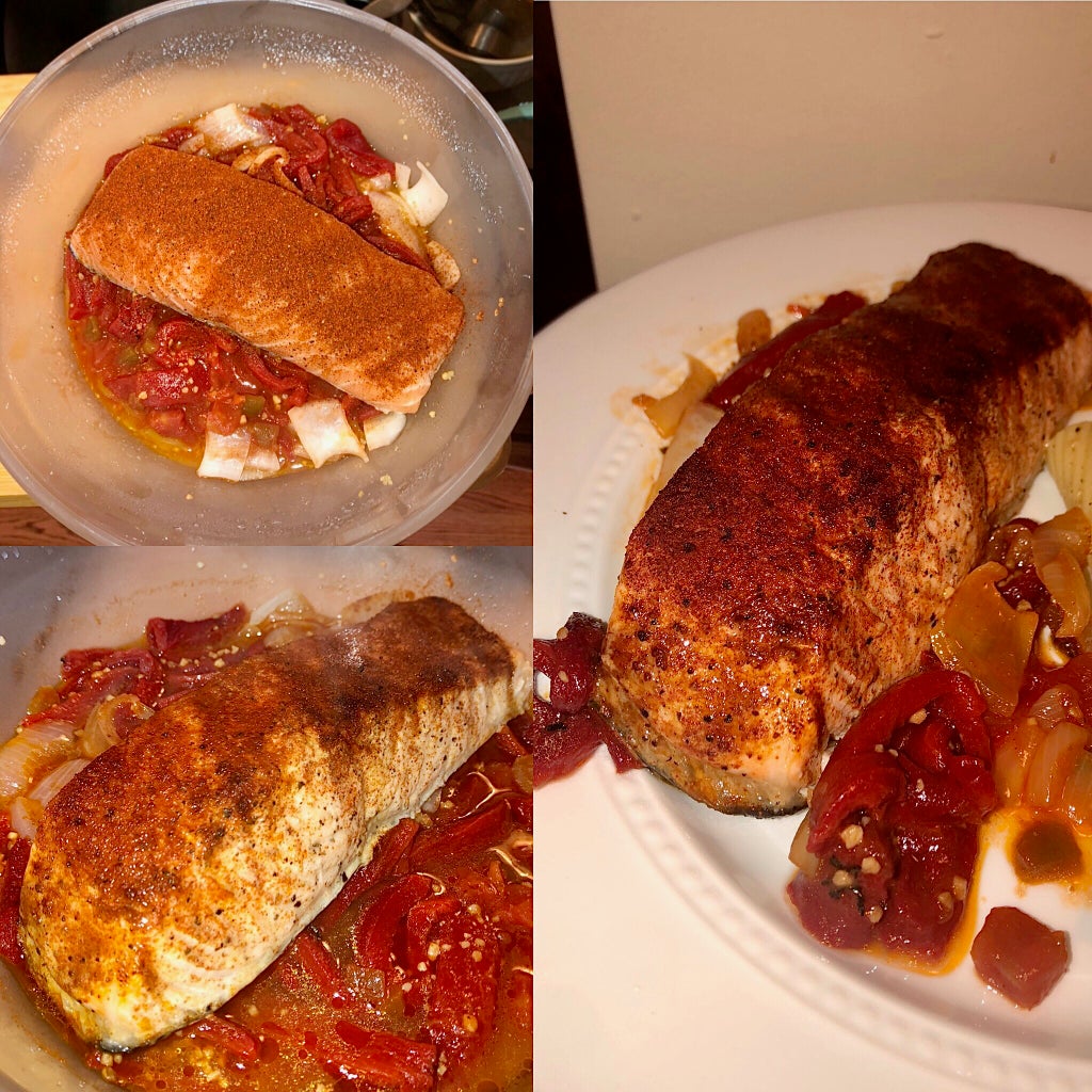 This meal was my turning point and what made me fully endorse these bowls. I love seafood because it is generally healthy, somewhat easy to cook, and flavorful, but I could never figure out how to successfully cook a salmon on my stovetop. I also never considered putting it in the microwave out of fear of the smell enveloping my apartment. The Anyday lids somehow kept my salmon moist yet crispy (maybe those stainless steel rings?), my apartment free of overwhelming fish smells, and left my stomach happy. As you can see, I loosely followed Anyday’s Braised Spicy Peppers recipe but rejoiced in my flavor-blasted piece of fish that laid on my plate after six minutes in the microwave.