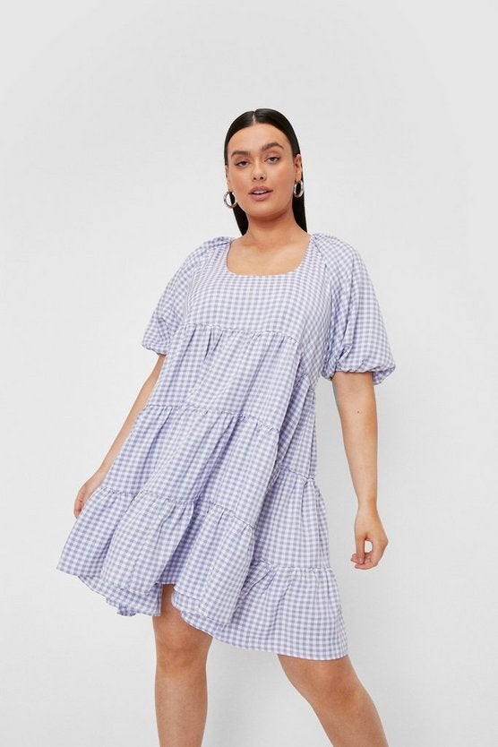 Nasty Gal Plus Size Gingham Print Tiered Mini Dress, $, available at NastyGal